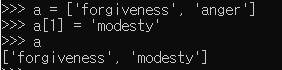 리스트 안의 특정 요소의 값을 수정하고 싶을 때는 어떻게 해야할까?