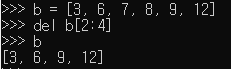 슬라이싱 기법을 사용하면 여러 요소들을 한 번에 삭제할 수도 있다.