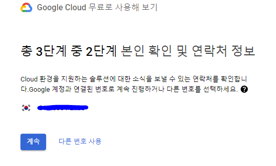 3. 2단계(본인 확인 및 연락처) : 본인의 연락처가 맞는지 확인한 후 계속 버튼을 클릭한다.